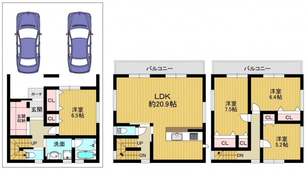 設備 | 電気 上水道 下水道 都市ガス 給湯 トイレ2ヶ所 | 備考 | ■現況更地 (完成予定 2026(令和8)年3月以降 ■ガレージ2台駐車可能 ■閑静な住宅街 ■土地間口広々約7.6m ■小学校、中学校が徒歩5分圏内 ■阪神本線「千船」駅徒歩3分の好立地 |